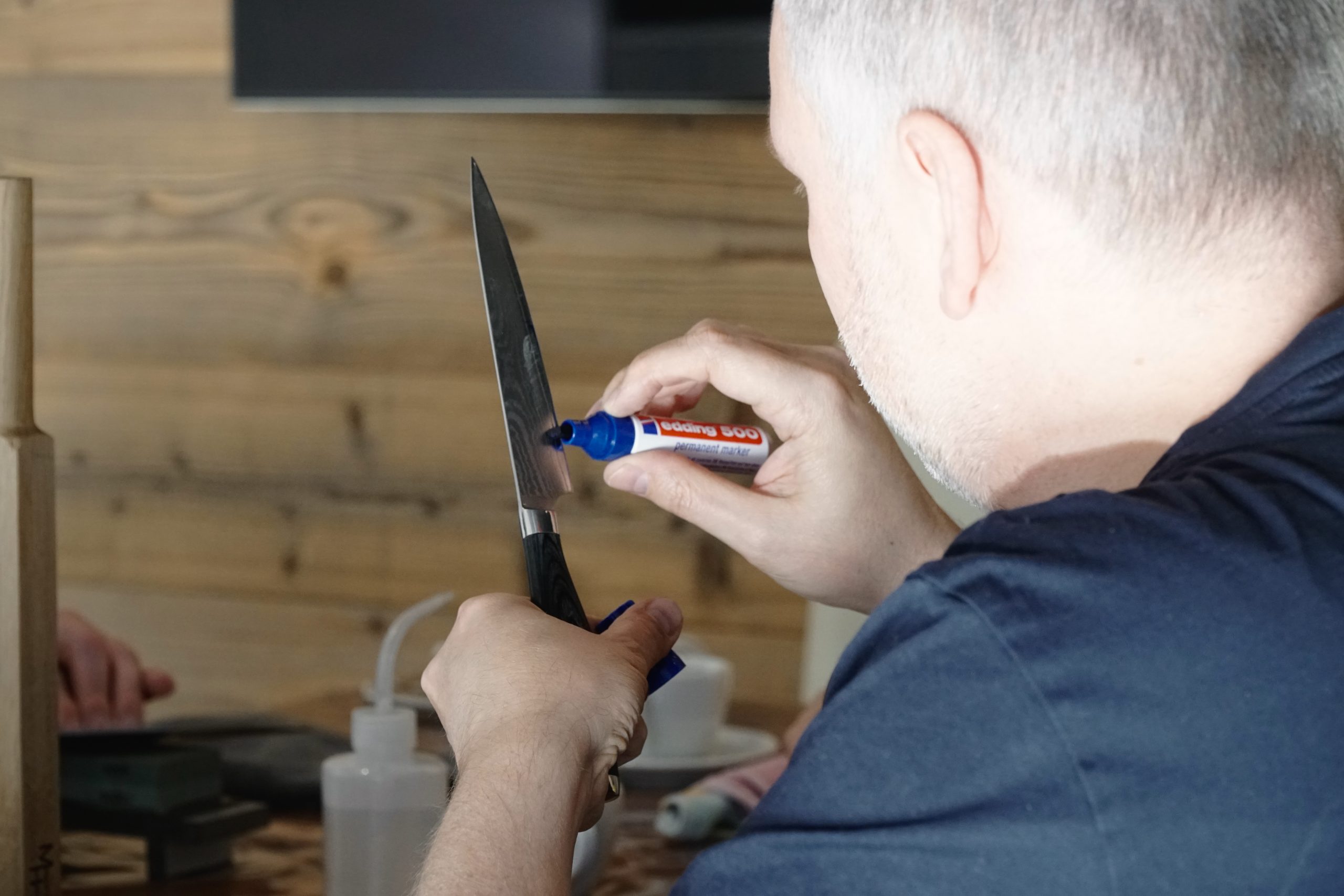 3. Praxis: Jeder Teilnehmer schärft sein eigenes Kochmesser